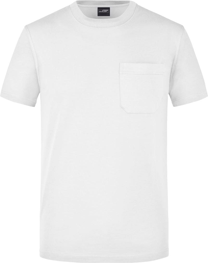 Rundhalsausschnitt mit Elasthan, Nackenband, aufgesteppte Brusttasche, Doppelnähte an Schultern, Hals- und Armausschnitt, formbeständig, 40° waschbar, nicht trocknergeeignet